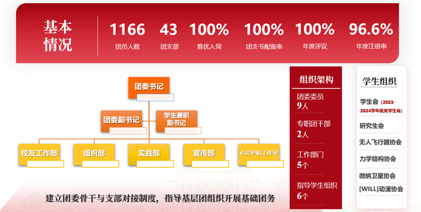 2023-2024学年,航空航天学院团委在院党委的领导和校团委的指导下,以习近平新时代中国特色社会主义思想为指导,深入学习贯彻党的二十大精神,紧紧围绕立德树人这一根本任务,以学生成长为中心,以学生全面发展为主要目标,不断提高学生学习科学文化知识的能力和服务国家的社会责任感,带领航院青年在火热实践中闪闪发光,展现新时代青年的担当和使命,为学校高质量发展贡献青春智慧,荣获2023-2024年度 “五四红旗团委”荣誉称号!这也是学院团委自成立以来首次获得该荣誉。