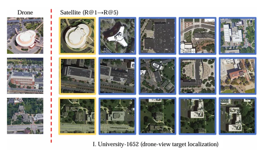 无人机的跨视角地理定位任务(Cross-View image Geo-Localization,CVGL)通过将无人机视角的图像与卫星图库进行匹配,以识别目标的地理位置,进而使无人机具备在复杂城市环境中实现目标精准定位的能力。这对无人机完成任务至关重要。其核心之一在于设计不依赖 GNSS、具备跨视角匹配能力的定位框架,使无人机在 GNSS 信号中断或不稳定的城市环境中,仍能保持与 GNSS 正常环境相当的定位能力。然而,无人机航拍视角与卫星俯拍视角存在显著差异,同时无人机飞行高度和拍摄角度的变化会导致同一目标建筑物的视觉外观发生变化,上述因素导致该任务长期面临视角差异大、特征歧义性强的核心挑战。