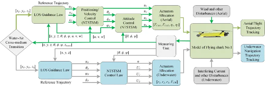 针对这一问题,中山大学张锦绣教授、刘源副教授团队以“Nonsingular terminal super-twisting sliding mode control with extended state observer for multi-domain motion control of tandemtwin-rotor Aerial-aquatic vehicles”为题,在我国领域顶刊《Defence Technology》(中科院一区,top, IF = 5.9)上发表论文。2022级博士生伍思繁为第一作者,中山大学张锦绣教授、刘源副教授为共同通讯作者。该跨介质无人机(飞鲨1号)曾获全国海洋航行器设计与制作大赛一等奖。此外,该研究得到了国家自然科学基金、广东省重点领域研发计划“海洋科技”重大专项旗舰项目、广东省特支项目以及南方海洋科学与工程广东省实验室(珠海)的资助。