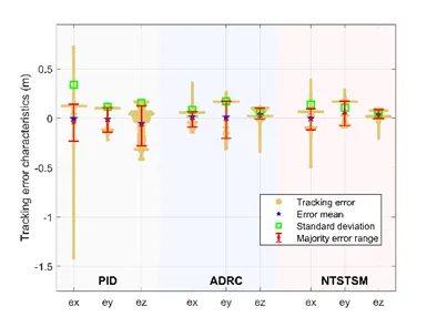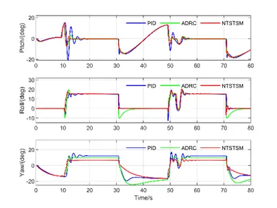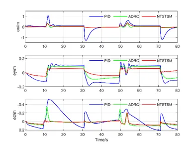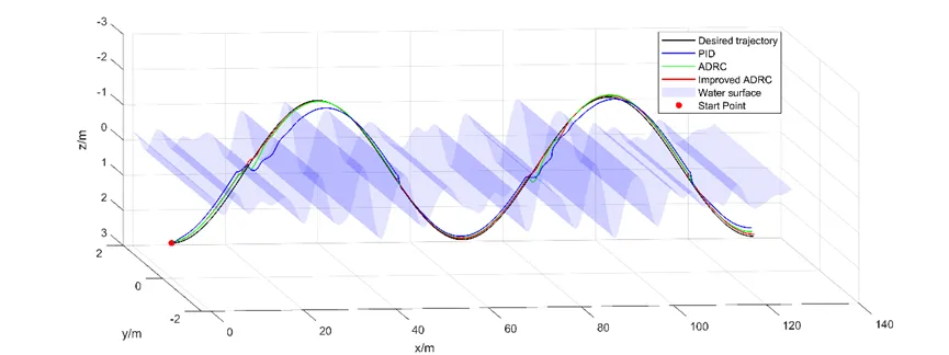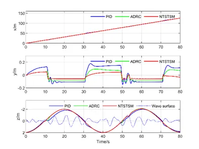 研究团队提出了一种带扩张状态观测器(ESO)的非奇异终端超螺旋滑模(NTSTSM)控制方法和跨域切换规则以应对复杂的环境扰动和满足跨介质无人机在多域场景下的不同任务需求。该研究利用LOS制导率,并结合NTSTSM控制方法实现了连续跨域轨迹的可靠跟踪。通过与PID和ADRC控制方法的仿真对比,所提出的控制方法显著提高了跨介质无人机在风、浪和洋流等复杂海域环境下的控制精度、响应速度和鲁棒性。