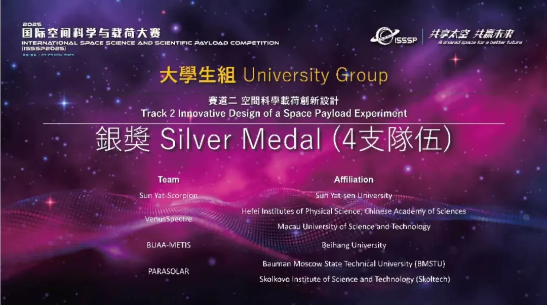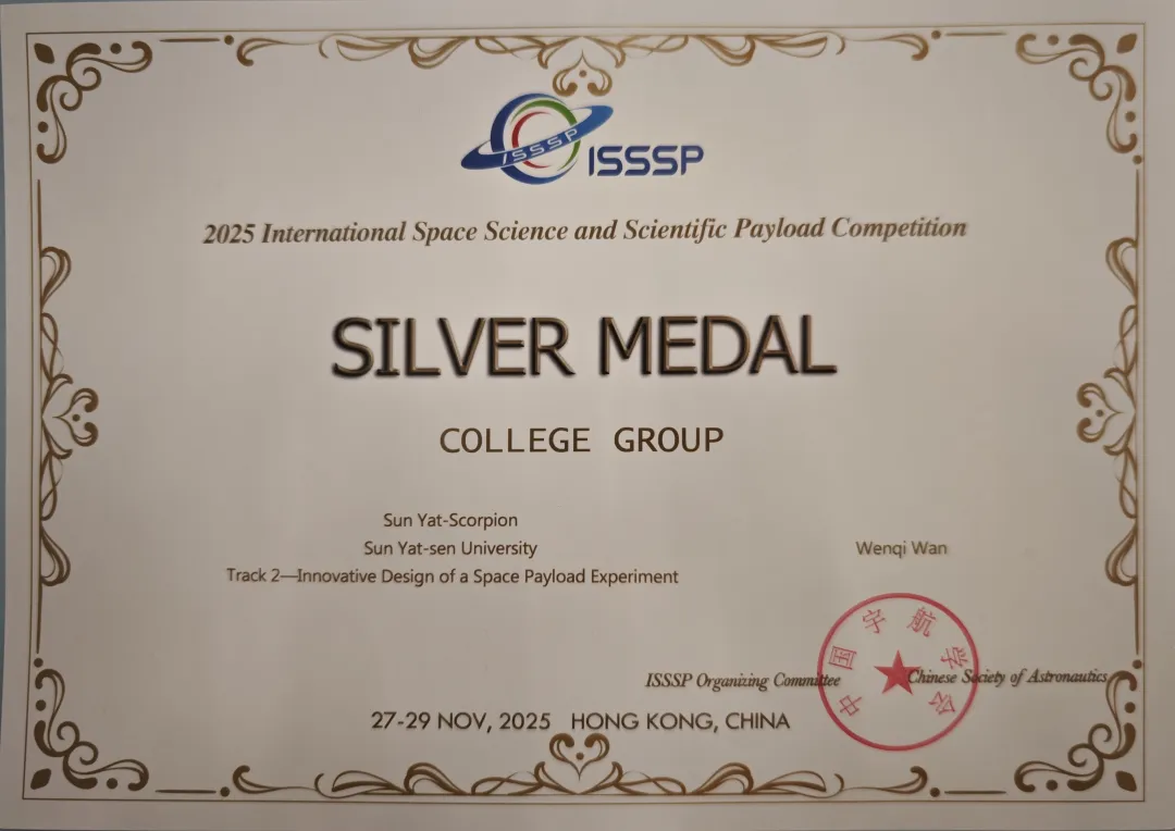 近日,2025年国际空间科学与载荷大赛在中国香港落下帷幕。中山大学航空航天学院代表队凭借出色的表现,在“大学组赛道二:空间科学载荷创新设计”中荣获国际银奖(金奖空缺)。